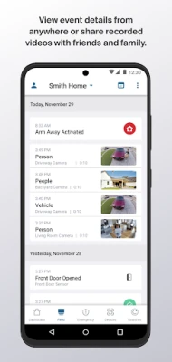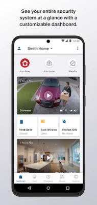 Instantly know the status of your home and manage your home security in one place with a customizable Dashboard. See video from recorded events, arm or disarm your security system, and access Emergency Response, right from your phone.