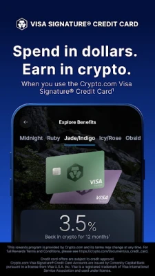 Crypto.com Visa Signature® Credit Card Accounts are issued by Comenity Capital Bank pursuant to a license from Visa U.S.A. Inc. Visa is a registered trademark of Visa International Service Association and used under license.