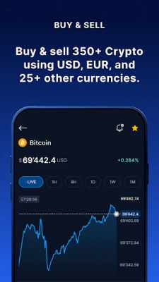 • Buy & sell popular crypto, including BTC and ETH, using 20+ fiat currencies or credit/debit card.