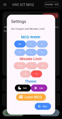 Introducing HSC ICT MCQ Test and Learn, the ultimate app designed for students preparing for their Higher Secondary Certificate exams in ICT. This comprehensive app offers students a robust platform to practice multiple-choice questions from every chapter of the ICT syllabus. Whether you're looking to test your knowledge or strengthen your understanding, HSC ICT MCQ Test and Learn provides an interactive way to master key concepts and excel in your exams. Download now and embark on a journey towards ICT proficiency!