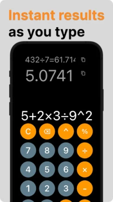 • Get results instantly as you type numbers and math operations (without having to press equal sign)