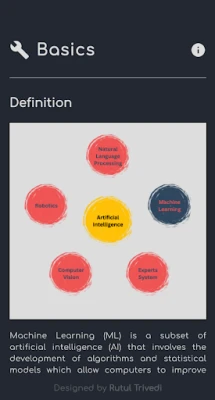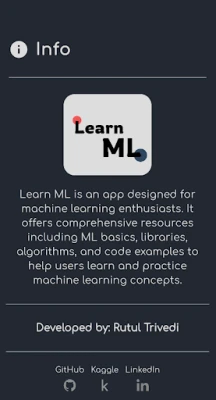 Learn ML is an app designed for machine learning enthusiasts. It offers comprehensive resources including ML basics, libraries, algorithms, and code examples to help users learn and practice machine learning concepts.