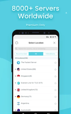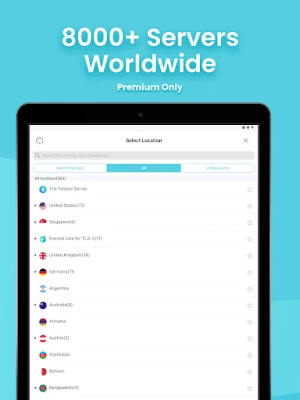 ★ 8000+ Servers Around 50+ Global Locations(Only premium can access all)